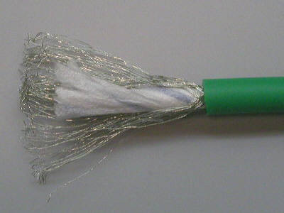 シールドのメッシュを解すと、不織布に包まれた、芯線部が出てきます。