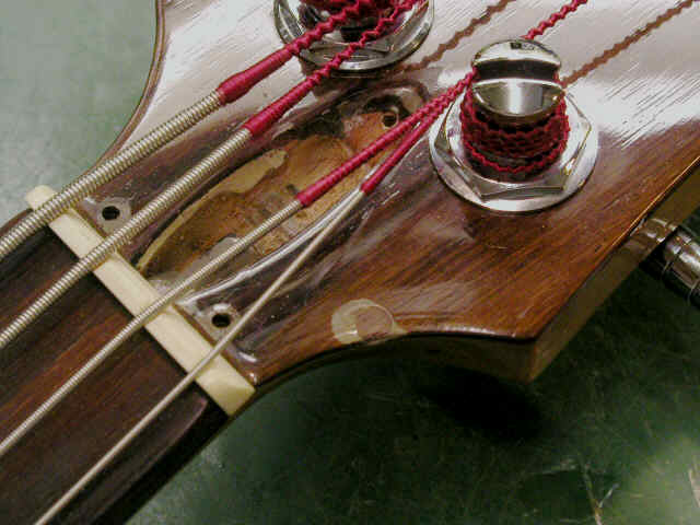 ネックヘッドの目立つ部分のクリヤ塗装が剥離している。