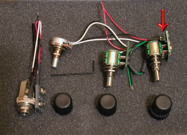 今回は、ピックアップパンポット用の2連ボリュームは、使いませんが、システムとして買ったほうがトーンユニットセットより、部品数が多く、その割にお値打ちな価格なのでフルセットにしました。