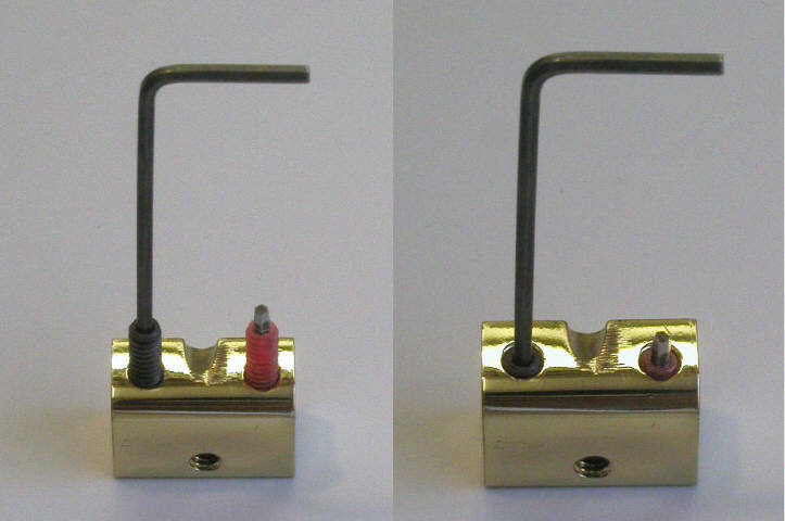 弦高調節の駒(サドル)との適合を調節して、レジン・パターンの完成。