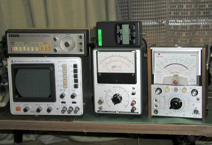 オシロスコープ・ミリバル・電子テスター・低周波発信機・周波数カウンター