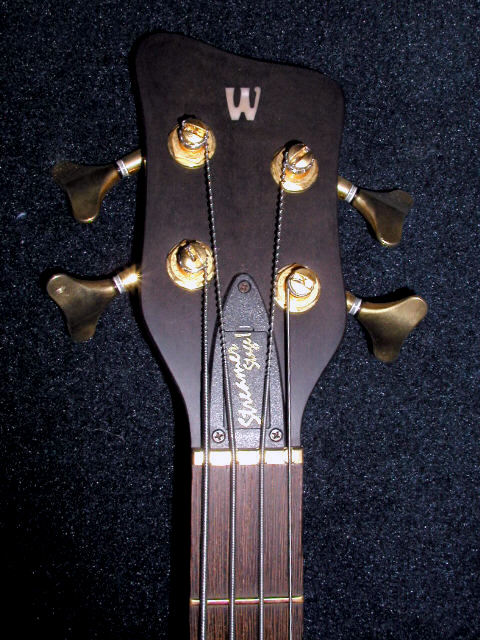 最高級のステージUは、指板にポジションマークのインレーがあり、ボディー木材のアフゼリア独特の杢目で、すぐ判ります。