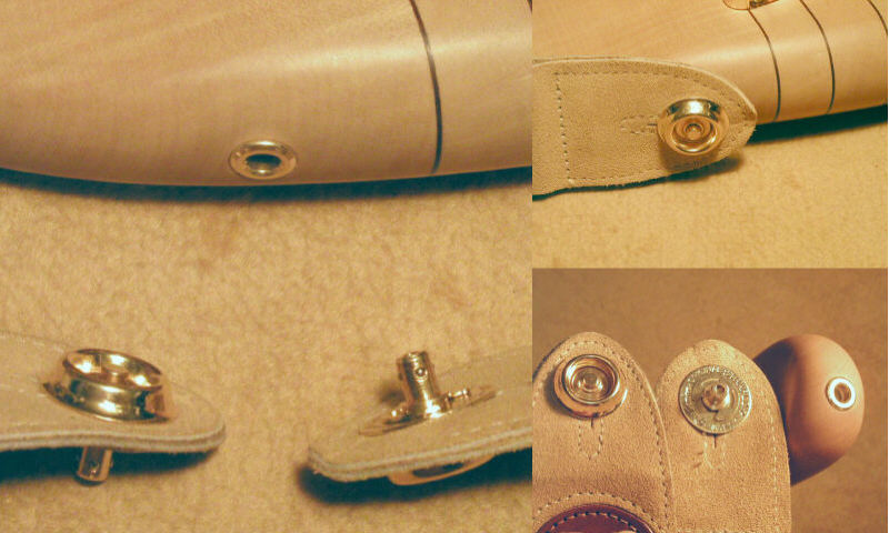 ワンタッチで脱着できる、ボール・ロック式のストラップピン。